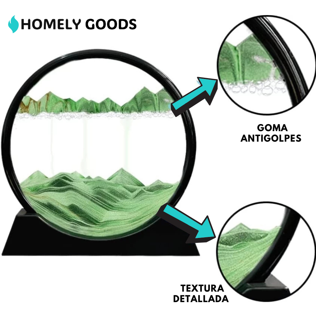 El Sky Clock™ transforma cualquier espacio con su hipnotizante arena movediza, brindando un toque de elegancia y serenidad a tu hogar.
